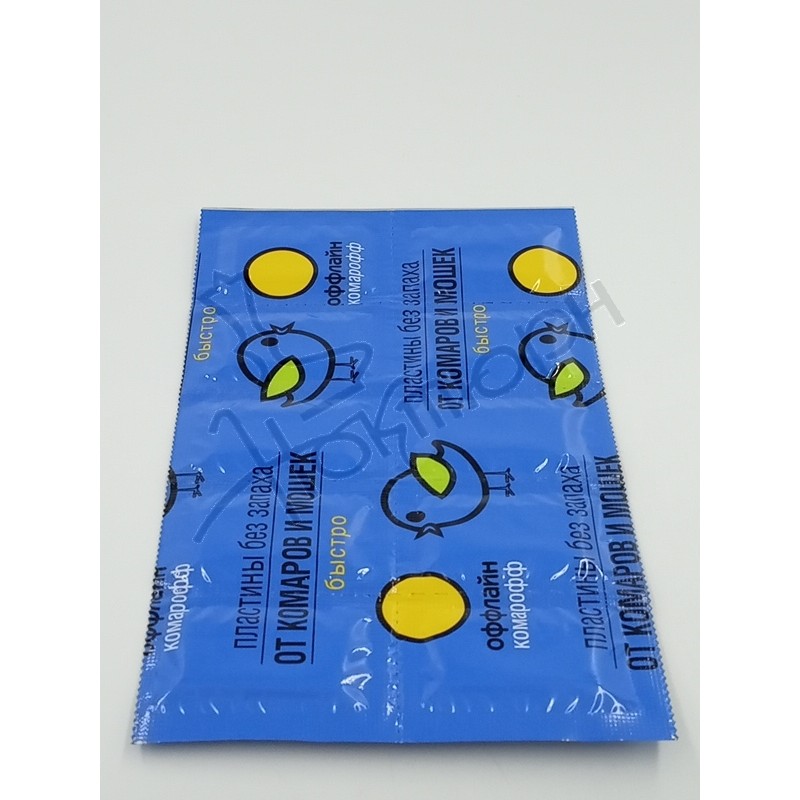 Применение: вскрыть ячейку, достать пластину и установить её в электрофумигатор. Полная гибель комаров в помещениях достигается за 20–40 минут в зависимости от площади. Пластина может быть использована многократно, при условии хранения в упаковке. Одна пластина рассчитана до 10 часов непрерывной работы в помещении до 20 кв м. Обесцвечивание пластины показывает окончание срока дейст­вия.