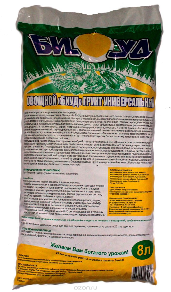 БИУД грунт ОВОЩНОЙ универсальный 8 л 6...